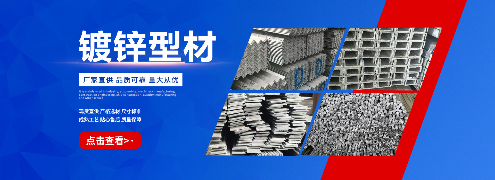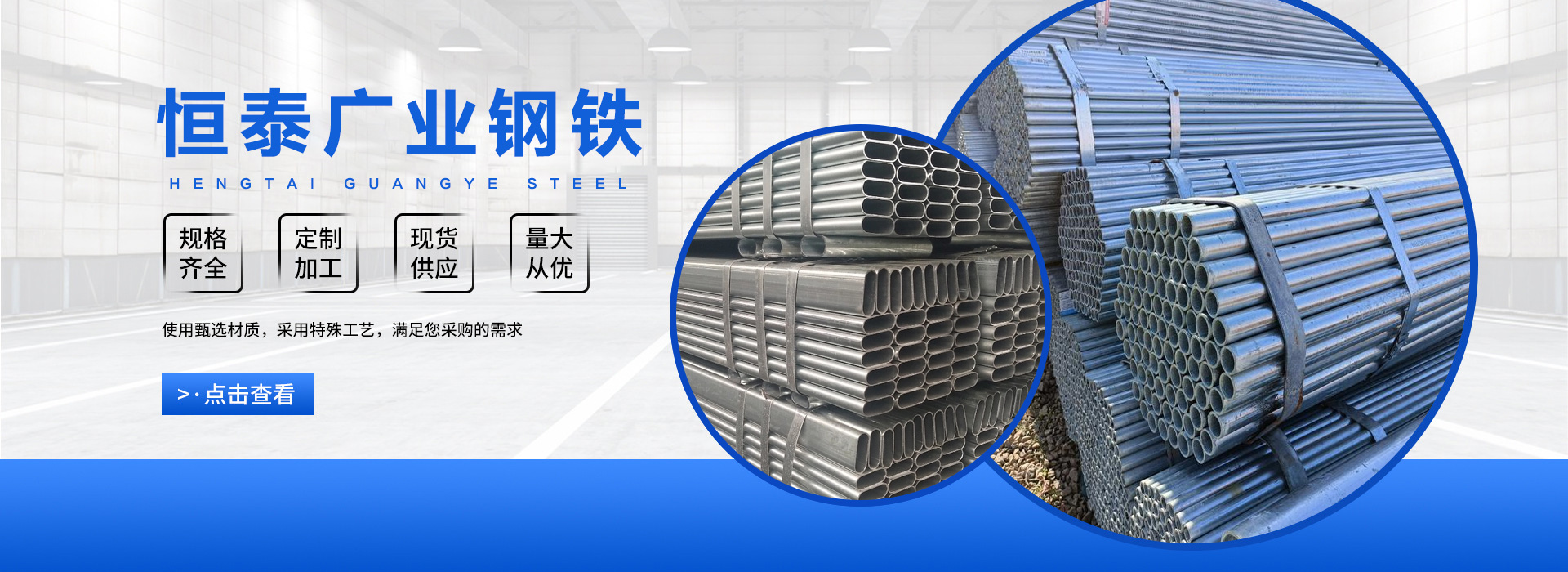 天津恒泰廣業(yè)鋼鐵有限公司是一家從事鋼鐵流通企業(yè)。本公司經(jīng)過多年的努力已在華東、華北、華南地區(qū)建立起良好的信譽,不僅在同行市場營銷上取得成績,而且將直銷作為公司主要銷售模式,為直接用戶提供優(yōu)惠價格、合格品質(zhì)的鋼材資源,直接降低了廣大用戶的采購成本,贏的廣大鋼材采購商的信任。 天津恒泰廣業(yè)鋼鐵有限公司主營大棚管,鍍鋅管,鍍鋅方矩管,鍍鋅帶圓管,鍍鋅帶方矩管,鍍鋅H型鋼,鍍鋅角鋼,鍍鋅槽鋼,鍍鋅扁鋼,鍍鋅圓鋼等.供應(yīng)溫室大棚,幕墻公司,公路設(shè)施,鋼構(gòu)工程用材, 產(chǎn)品規(guī)格范圍: 鍍鋅鋼管4分-10寸,鍍鋅方管:20*20—800*800,選擇天津恒…